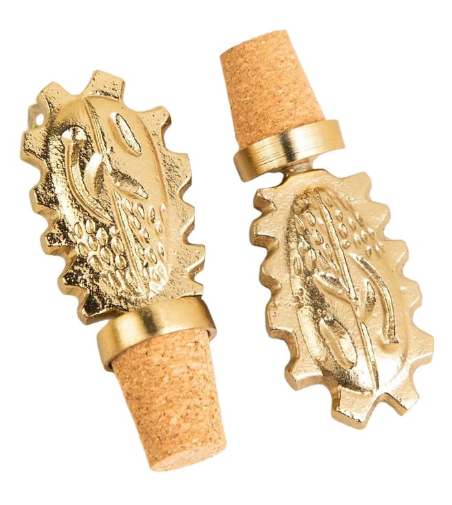 Mahogany Pod Metallic Brass Wine Bottle Cork - Set Of 2