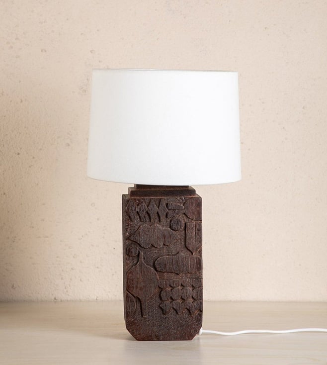Senhur Hand Carved Mango Wood Table Lamp