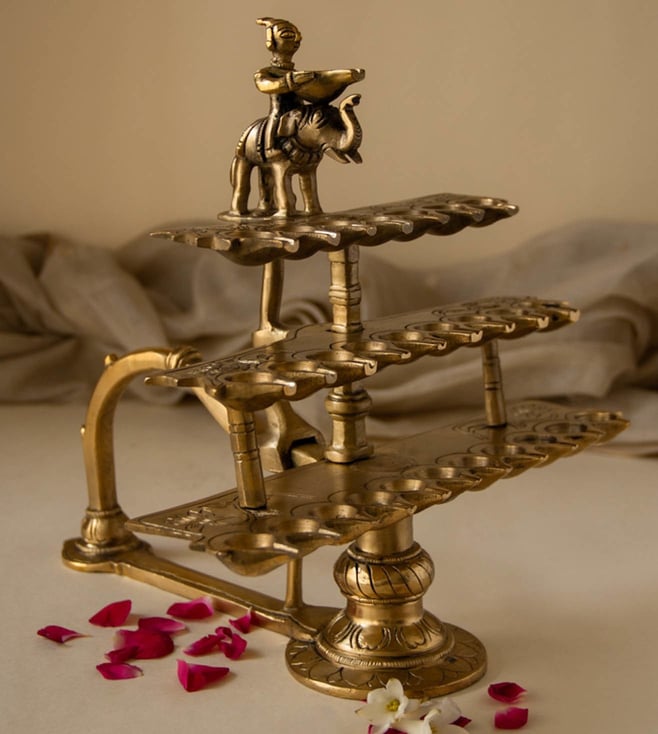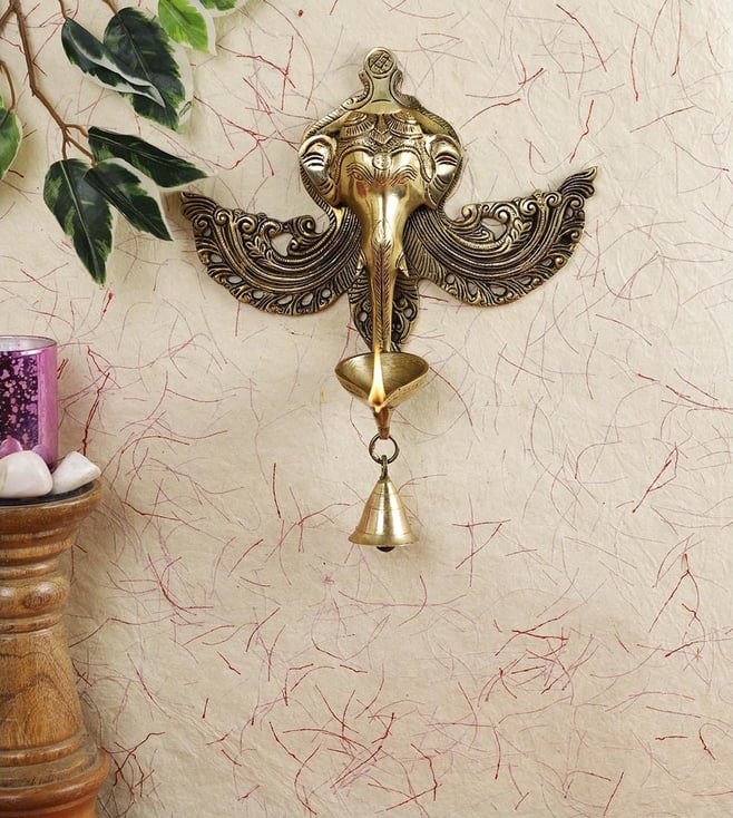 Ganesh Mask Wall Hanging Diya With Bell Decorative Brass