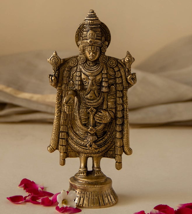 Small Size Brass - Lord Tirupati Balaji Standing With Chakra & Conch