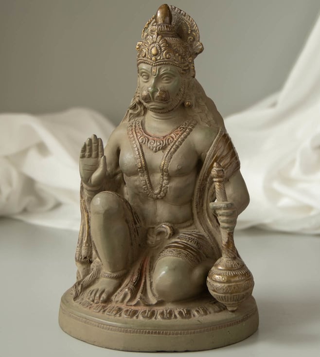 Aashirwaad Blessing Hanuman Round Base Brass Idol Patina