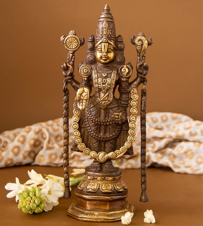 Triupati Balaji Brass Big Idol - Gold & Brown Finish