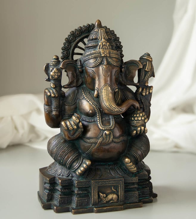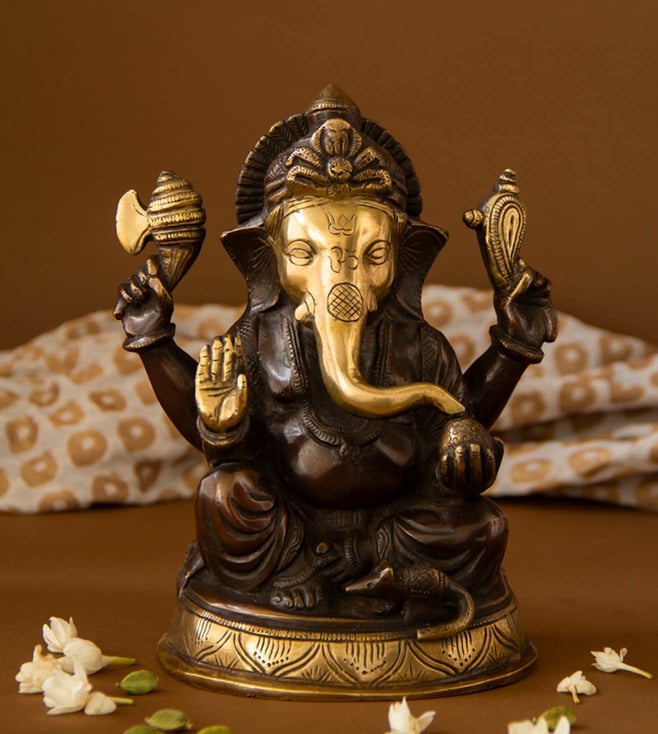 Blessing Ganesha Brass Big Idol - Gold & Brown Finish