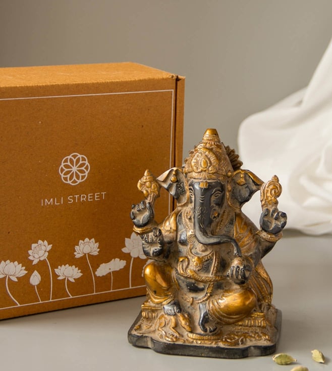 Ganesh Brass Idol - Gold & Black Patina Finish