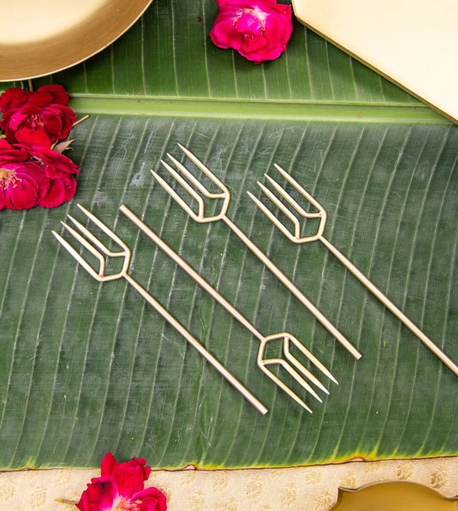 Antique Gold Brass Classic Mezban Forks - Set of 2