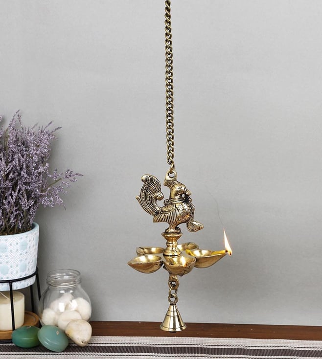 Ganesh Design Wall Hanging 3 Diya With Bells Decorative Brass
