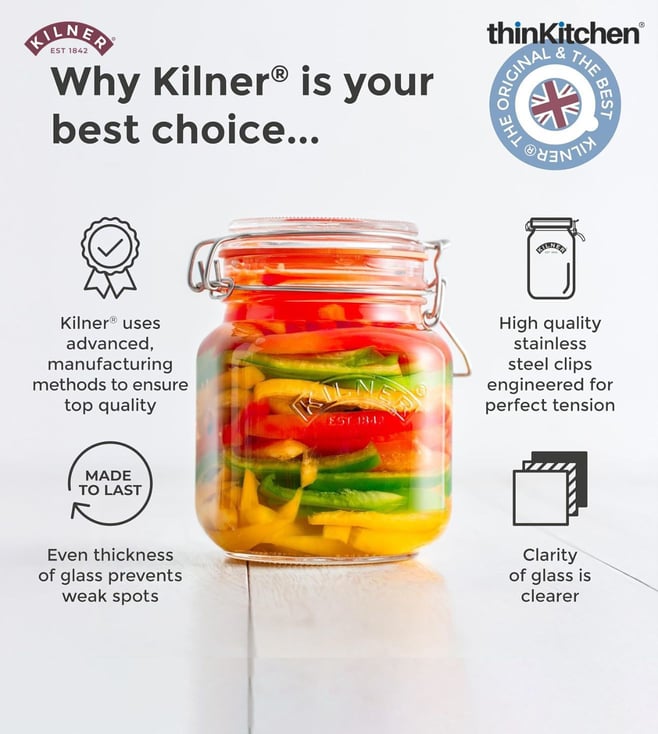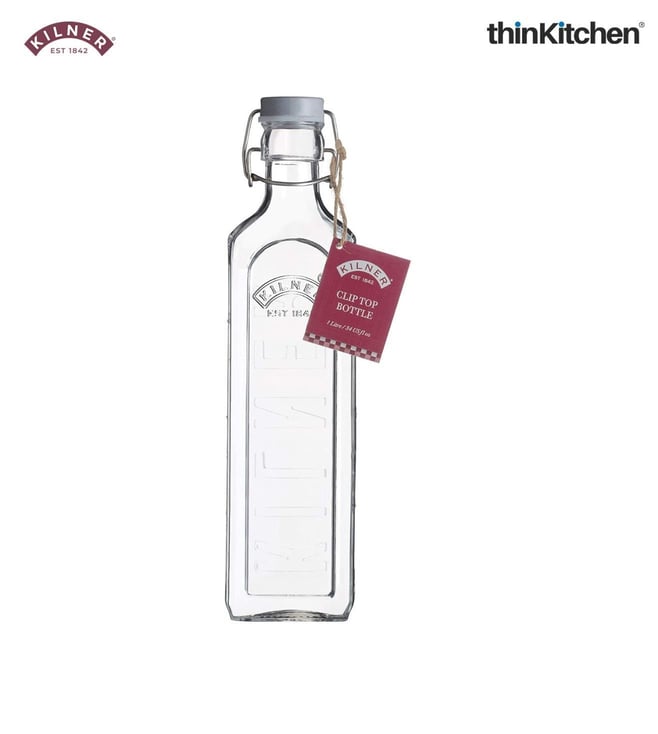 Transparent Glass Clip Top Preserver Bottles (1 L) - Set of 2