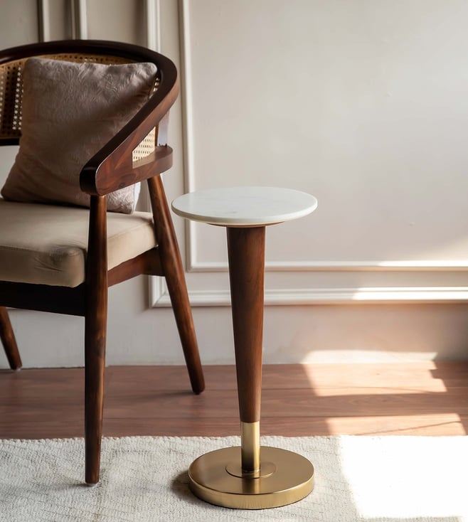 Dark Brown And Gold Acacia Wood And Mild Steel Side Table