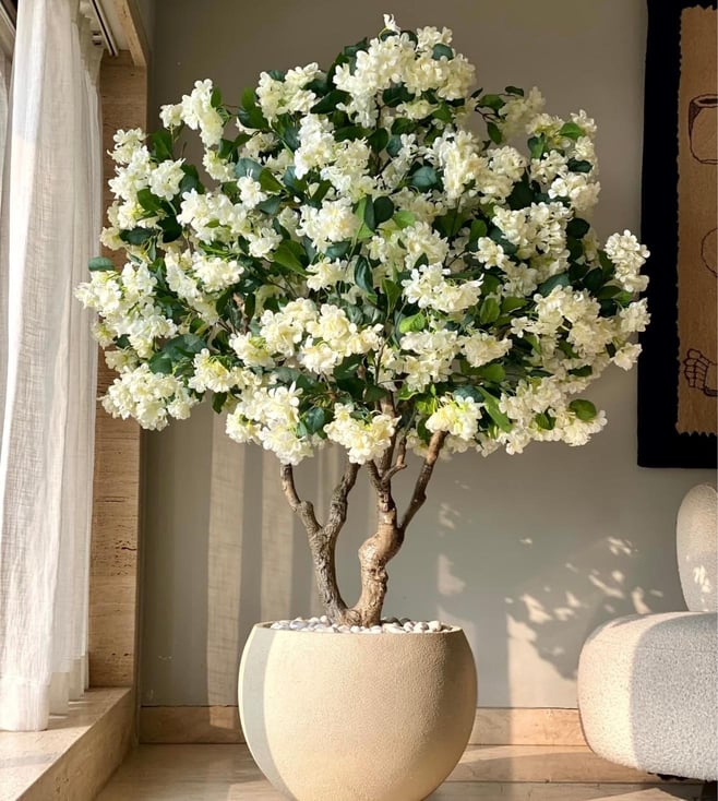 Artificial White Blossom Plant - 6 Feet (With Pot) - (Set of 1)