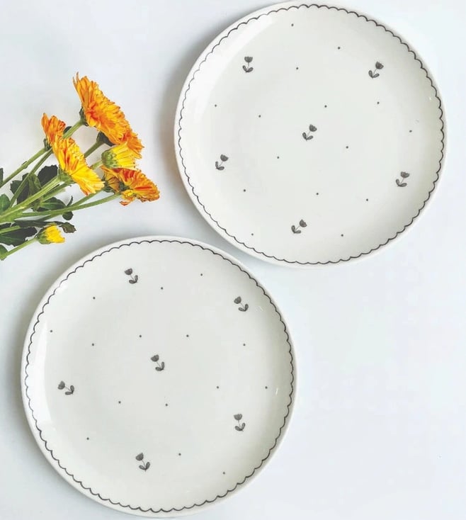Black Ditsy Quarter Plate Set of 2