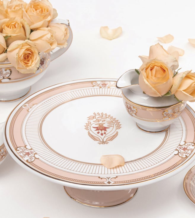 White & Pink Mughal Garden 27 Piece Dinner Set