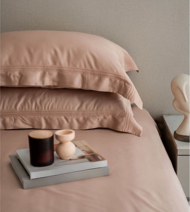 Peach Cream Bamboo Pleated 400 TC Super King Bedsheet with Pillow Cover