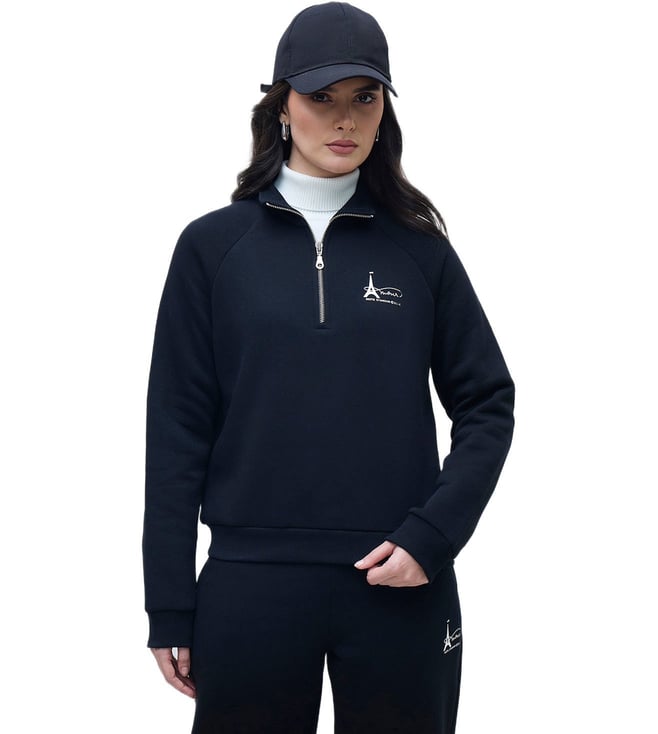 Women Black Branded Artwork Solid Sweatshirt