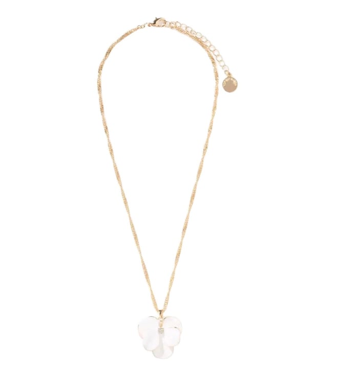 Elevate your style with the bridget flower pendant necklace from Forever New. Embrace elegance with its floral inspired design featuring white enamel petals and a sparkling crystal center. The gold tone setting adds a touch of luxury, while the clasp fastening with extender chain ensures a perfect fit. Perfect for adding a feminine touch to any outfit, this necklace is a must have accessory for those who appreciate timeless beauty and sophistication. Stand out with this stunning piece that will surely turn heads wherever you go.
