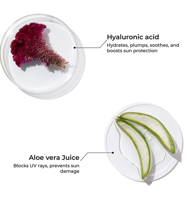 This lightweight non sticky sunscreen shields skin from both UVA and UVB rays with PA plus protection is infused with hyaluronic acid which draws moisture into the skin, providing long-lasting hydration. This helps plump the skin, reducing the appearance of fine lines and supporting a youthful, fresh complexion by strengthening the skin's natural barrier, protecting against environmental stressors while maintaining skin health and elasticity.