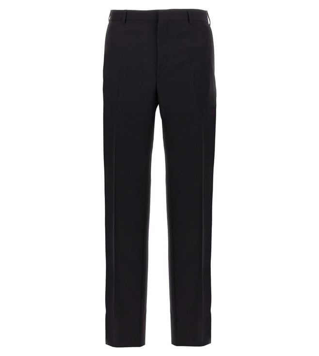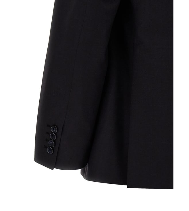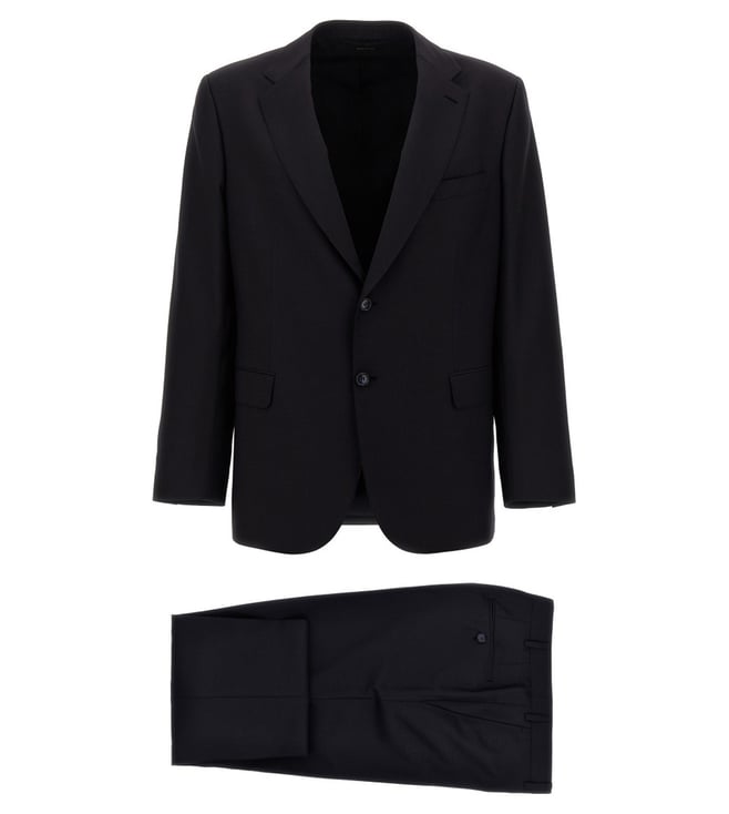 Elevate your style with the Brioni Black Tailored Fit Suit. Trevi' wool and dress consisting of singlebreasted blazer with button closure, pockets, long sleeves, back slits and pants with zip, hook and button closure, pockets. True to size fit. Products purchased from Darveys are supported exclusively by the warranty/exchange policies of Darveys and its partner boutiques. Brand owners and their channel partners are not responsible for exchange/warranty services for items purchased through Darveys.