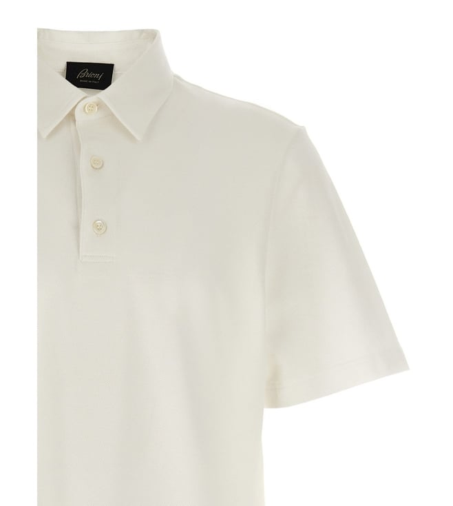 Elevate your style with the Brioni Off White polo t-shirt. Pique cotton polo shirt with collar, buttons, side splits, short sleeves. True to size fit. Products purchased from Darveys are supported exclusively by the warranty/exchange policies of Darveys and its partner boutiques. Brand owners and their channel partners are not responsible for exchange/warranty services for items purchased through Darveys.