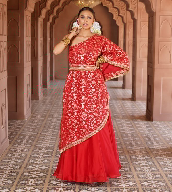 Rose Red Cleopatra Isabella Lehenga Set