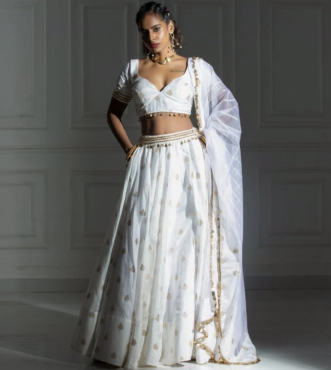 Soul of Swan White and Gold Diana Brocade Lehenga Set