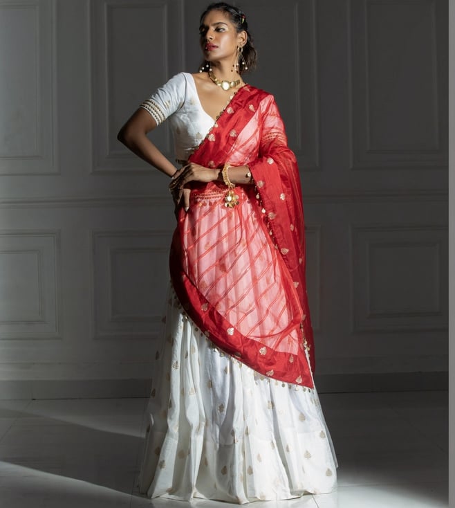 Ivory White & Rose Red Cleopatra Nicotina Lehenga Set