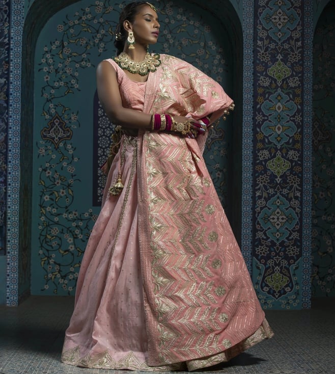 Peach Brocade Gota Work Stitched Lehenga Set