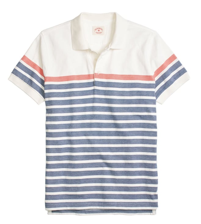 Elevate your stylish collection with this polo t shirt from Brooks Brothers. Made from cotton, this t shirt features a jacquard herringbone striped pattern and placket for a seamless and clean look with 3 Corozo buttons.