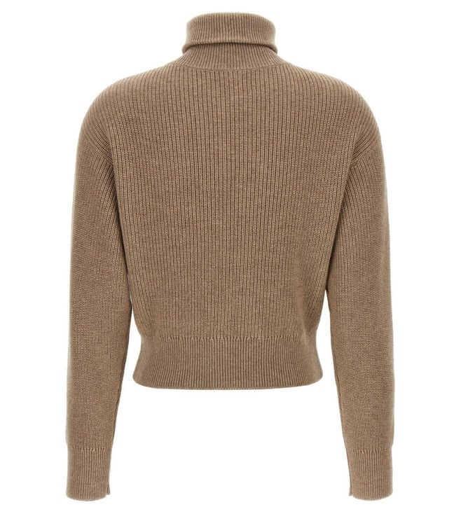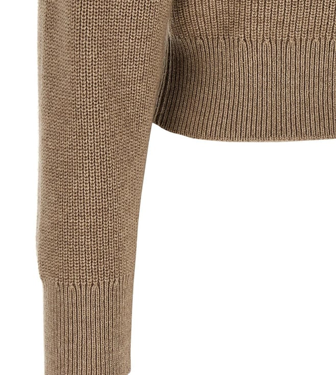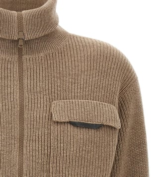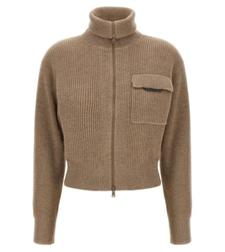 Brunello Cucinelli Beige Shiny Flap Detail Cardigan