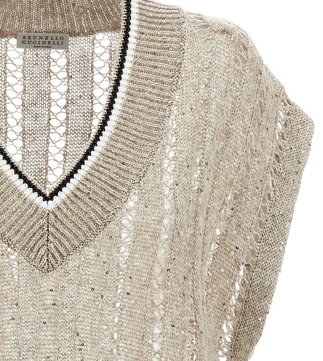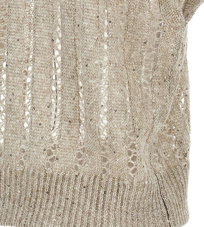 Experience the epitome of casual elegance with the Brunello Cucinelli Beige T-Shirt. This dazzling piece, in a serene beige hue, offers a relaxed fit that effortlessly drapes for a chic silhouette. Crafted from a luxurious blend of 94% linen and 6% nylon, it promises breathability and subtle texture. Designed for the modern woman, this t-shirt combines comfort with sophistication, making it a versatile staple for any wardrobe. Perfect for any occasion, it embodies timeless style and understated luxury.