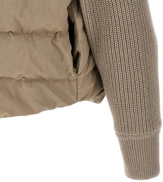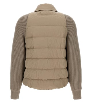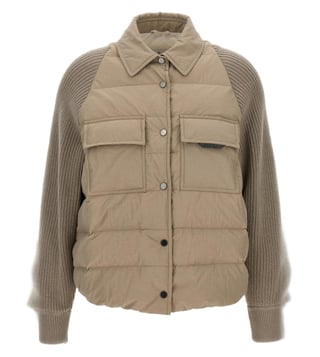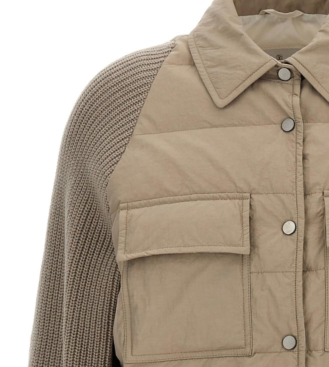 Brunello Cucinelli Beige Two-Material Shiny Flap Detail Relaxed Fit Jacket