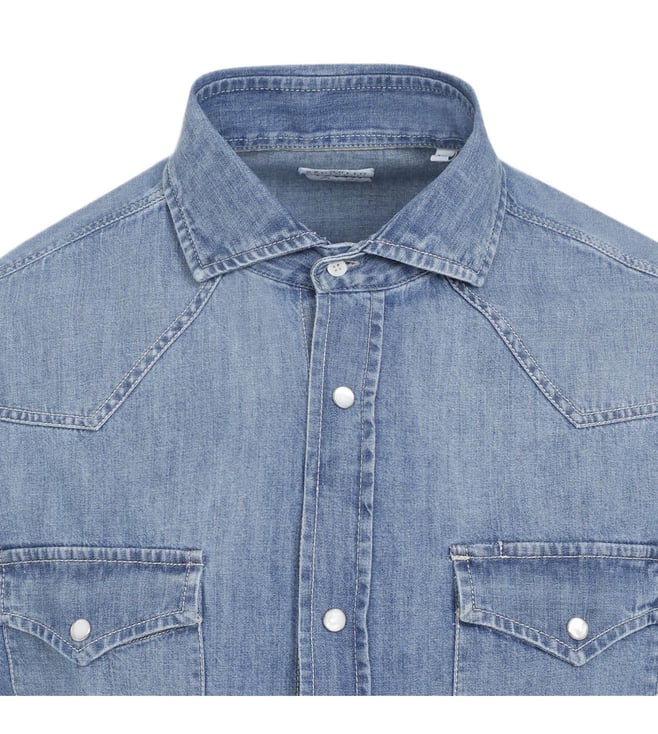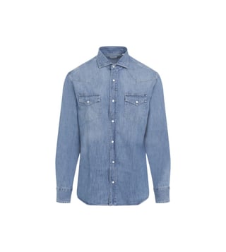 Brunello Cucinelli Blue Denim Cotton Shirt