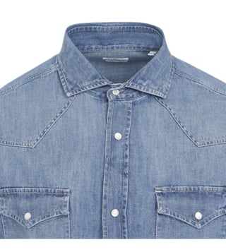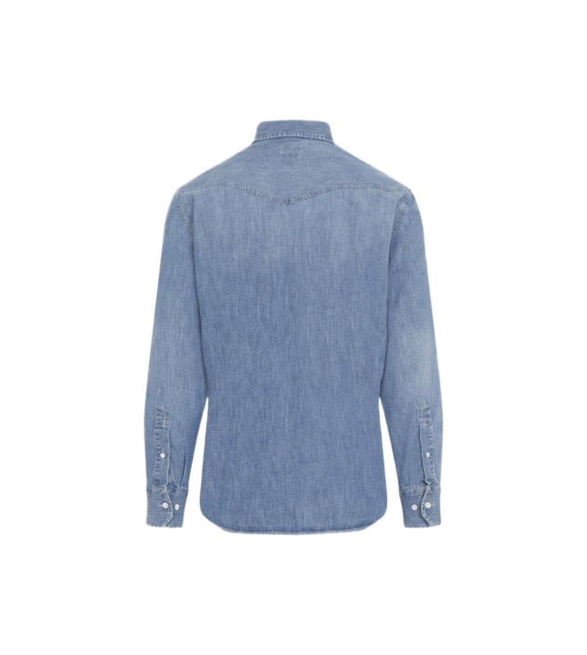 Brunello cucinelli medium denim blue cotton shirt. Pure denim blue cotton shirt, pointed collar, front buttoned fastening, flap buttoned pockets on the chest, geometric stitching on the shoulders, long sleeves, buttoned cuffs, round hem. Overwashed effect. Products purchased from Darveys are supported exclusively by the warranty/exchange policies of Darveys and its partner boutiques. Brand owners and their channel partners are not responsible for exchange/warranty services for items purchased through Darveys.