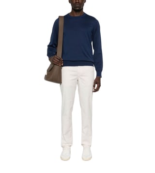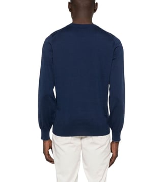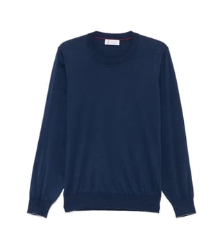 Elevate your style with the Brunello Cucinelli Navy Blue Sweater. Lightweight sweater by brunello cucinelli in navy blue cotton with a crew neck and ribbed hem and cuffs. Products purchased from Darveys are supported exclusively by the warranty/exchange policies of Darveys and its partner boutiques. Brand owners and their channel partners are not responsible for exchange/warranty services for items purchased through Darveys.