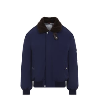 Brunello Cucinelli Navy Blue Bomber Jacket