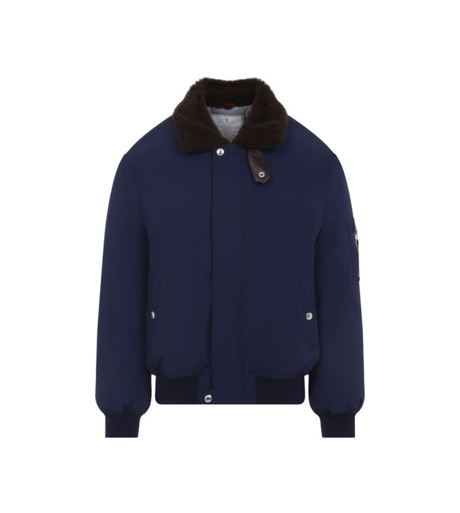 Elevate your style with the Brunello Cucinelli Navy Blue Bomber Jacket. Collar, front concealed button and zip fastening, two pockets on front, zip pocket at long sleeves, ribbed cuffs and hem. Products purchased from Darveys are supported exclusively by the warranty/exchange policies of Darveys and its partner boutiques. Brand owners and their channel partners are not responsible for exchange/warranty services for items purchased through Darveys.