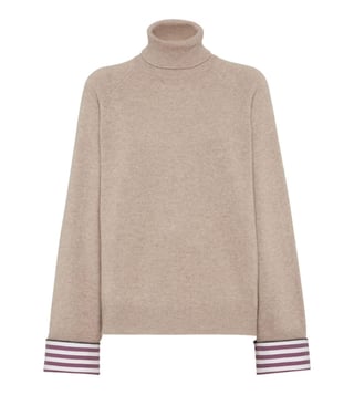 The Brunello Cucinelli Light Brown Sweatshirt is a masterpiece of understated elegance, crafted for those who appreciate the finer things in life. Its soft, luxurious fabric envelops you in warmth, while the subtle hue evokes the serene beauty of a Tuscan landscape at dusk. The minimalist design is accentuated by meticulous stitching and a refined silhouette, making it a versatile piece that effortlessly transitions from casual outings to sophisticated gatherings, embodying timeless style and comfort.