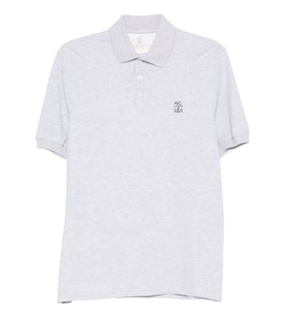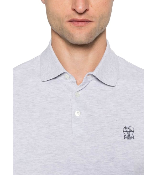 Brunello Cucinelli Light Grey Logo Cotton Polo Shirt