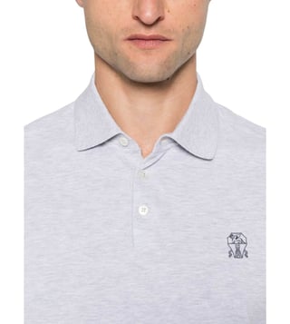 Elevate your style with the Brunello Cucinelli Light Grey polo t-shirt. Light grey cotton polo, classic polo collar, contrasting grey embroidered logo on the chest, short sleeves, ribbed trims, straight hem. Products purchased from Darveys are supported exclusively by the warranty/exchange policies of Darveys and its partner boutiques. Brand owners and their channel partners are not responsible for exchange/warranty services for items purchased through Darveys.