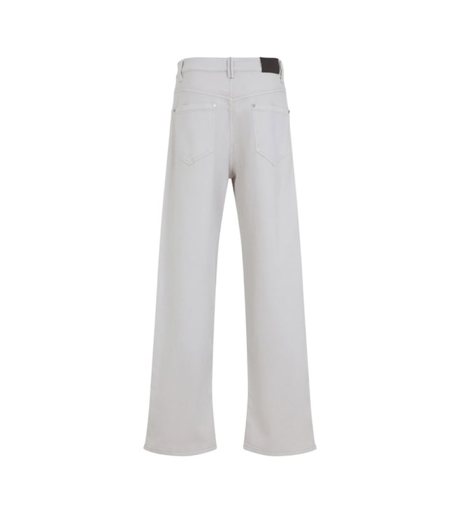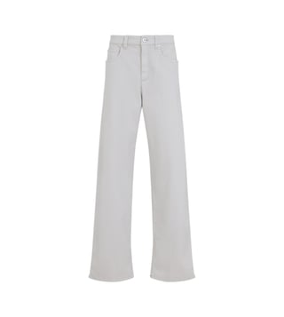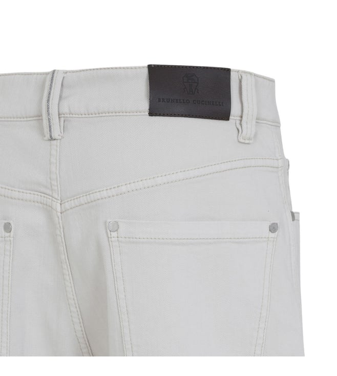 Elevate your wardrobe with the Brunello Cucinelli Off White Straight Fit Jeans. Designed with brunello cucinelli garment dyed grey cotton jeans. crafted from grey cotton, garment dyed, 5-pocket design, front button and fly-zip fastening, belt loops, contrasting stitching, branded leather label at the back waist, straight hem. these trousers combine comfort and sophistication for everyday wear.