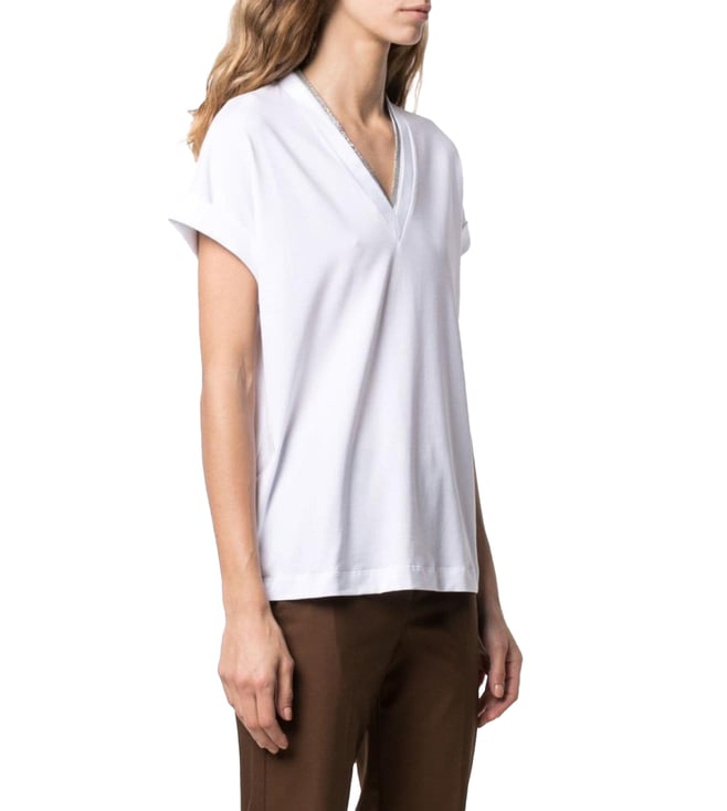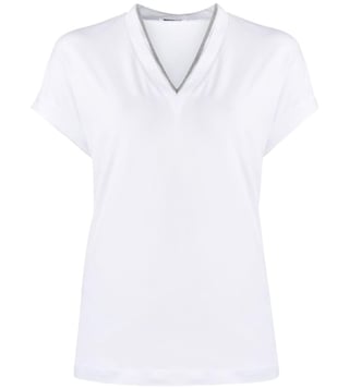 Brunello Cucinelli White V-Neck Cotton T-Shirt