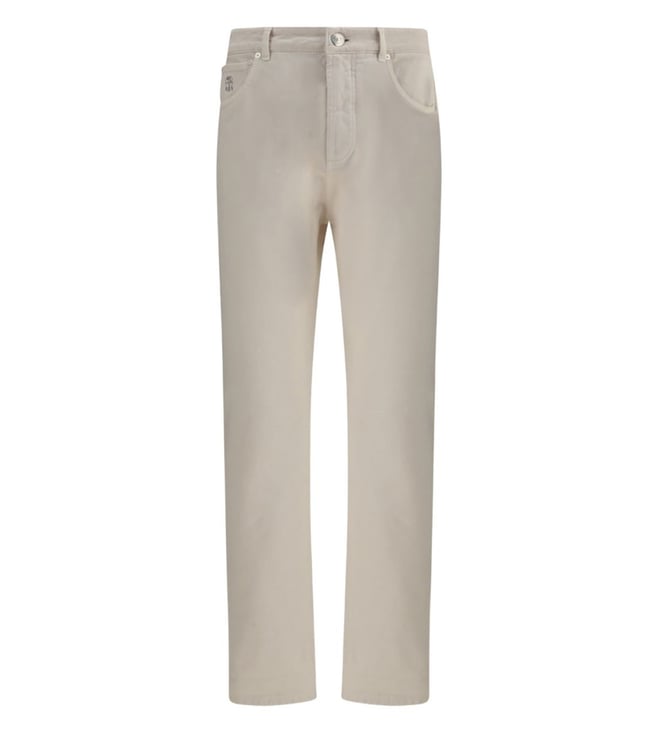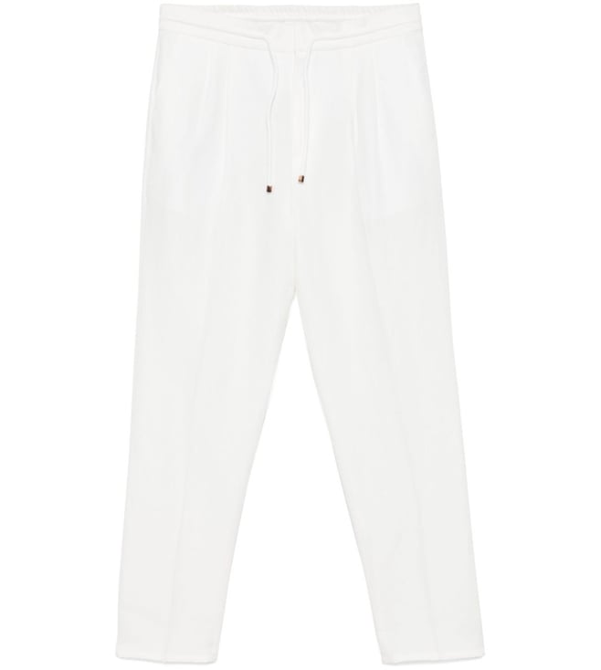 White Tapered Leg Regular Fit Trousers