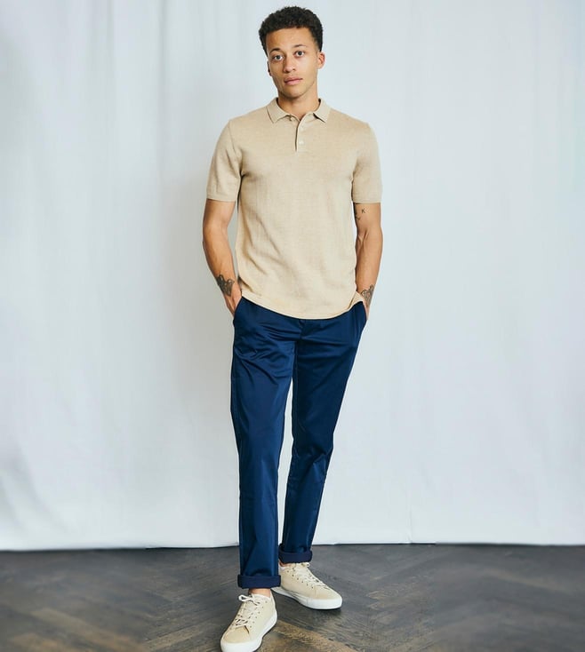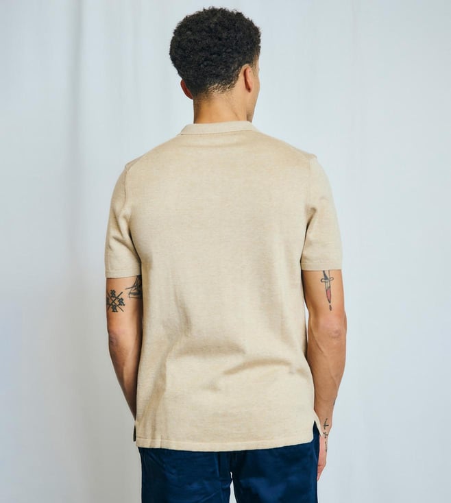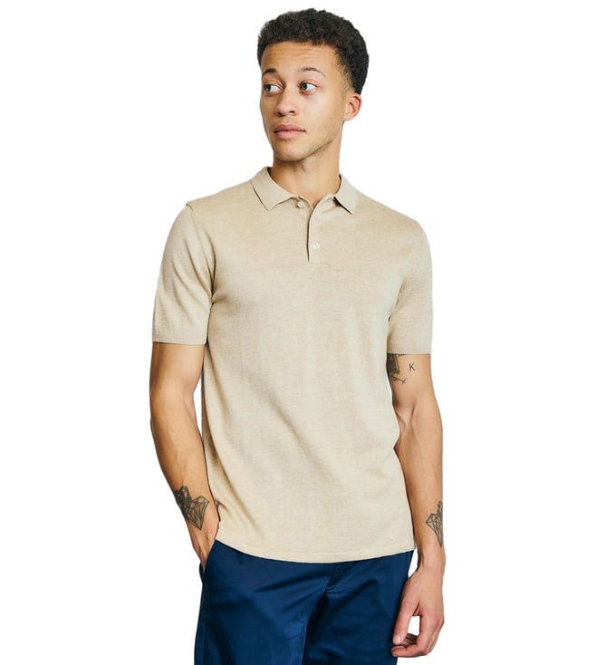 Elevate your casual wardrobe with this beige polo t-shirt for men. Crafted from a soft cotton blend, it features a regular fit and solid pattern. The short sleeves and classic polo collar offer timeless style, while the button closure adds a touch of sophistication. Perfect for versatile, everyday wear.