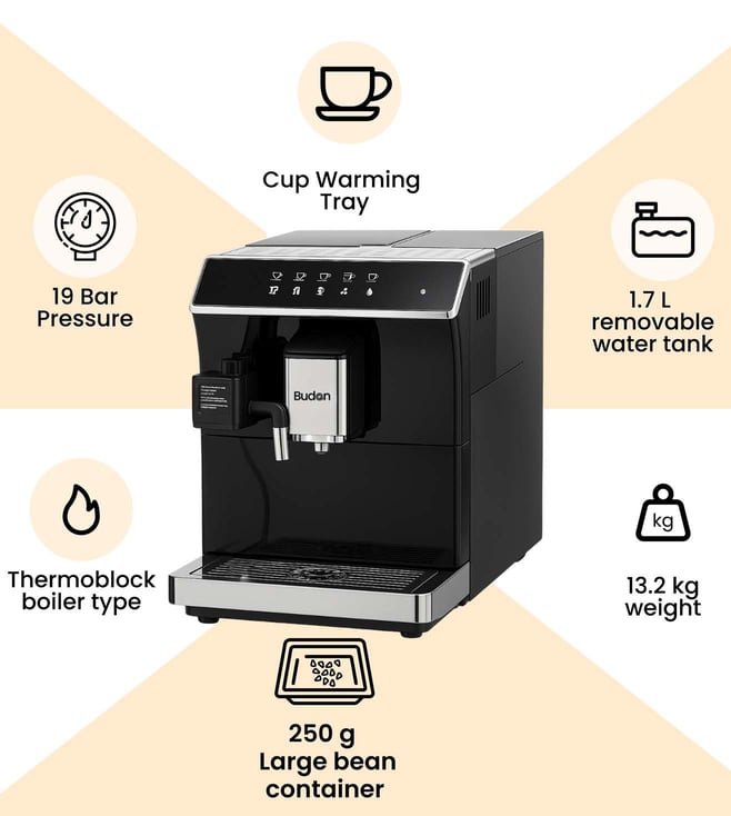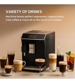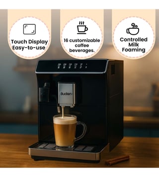Enjoy caf¿-style coffee at home with the Budan CM X7 Fully Automatic Coffee Machine. With a 19-bar pump, precision grinder, adjustable dosing (9.5¿13.5g), and Latte Crema Milk Foam System, it delivers rich, aromatic coffee every time. The HD touch display offers 16 one-touch beverages¿espresso, cappuccino, latte, americano, and more. Elegant, efficient, and easy to use, the CM X7 brings a premium caf¿ experience to your kitchen daily.