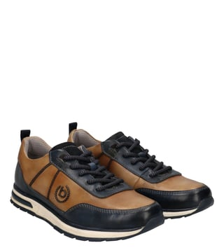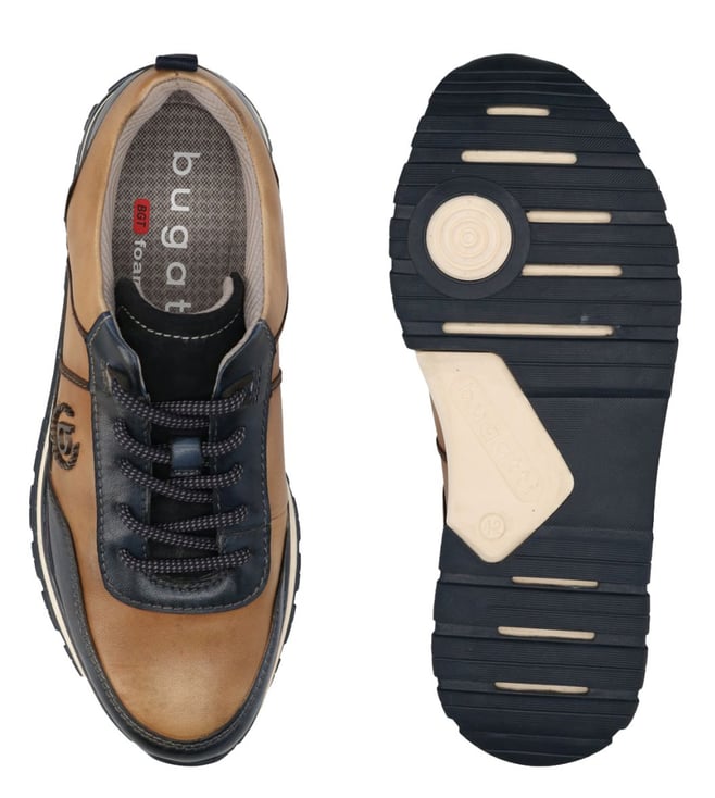 Explore fashionable dual-tone sneakers with Bugatti Cunio sneakers that offer a perfect mix of casual appearance and dark hues. Uppers crafted from premium-grade leather come with contra-colored counters that highlight the look of finesse. Sturdy and durable TPR outsoles ensure superior grip on different terrains.