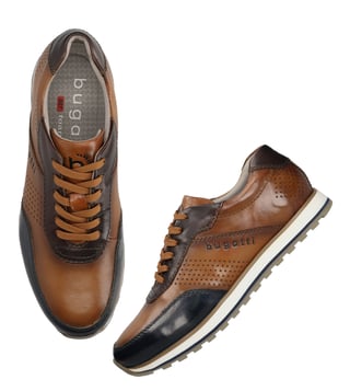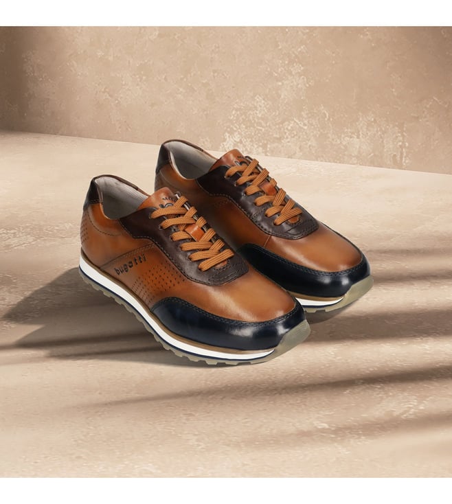 Men's Garnet Evo Dark Blue & Cognac Perforated Sneakers