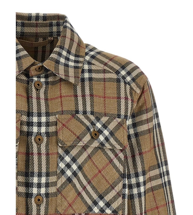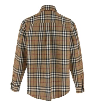 Elevate your style with the Burberry Beige Checked Oversized Fit shirt. Front metal button placket classic collar long sleeves buttoned cuffs patch pockets at chest with buttoned flap back yoke with box pleats curved hem burberry check motif doubleface cotton and linen design oversized fit. Products purchased from Darveys are supported exclusively by the warranty/exchange policies of Darveys and its partner boutiques. Brand owners and their channel partners are not responsible for exchange/warranty services for items purchased through Darveys.