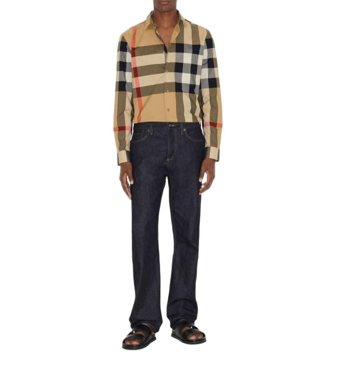 Elevate your style with the Burberry Beige Checked Regular Fit shirt. Checkered cotton shirt from burberry featuring archive beige, cotton, check print, classic collar, front button fastening, shirt sleeves and curved hem. This piece fits true to size. recommend you get your regular size model is 1,84m / 6ft 1in wearing size m.