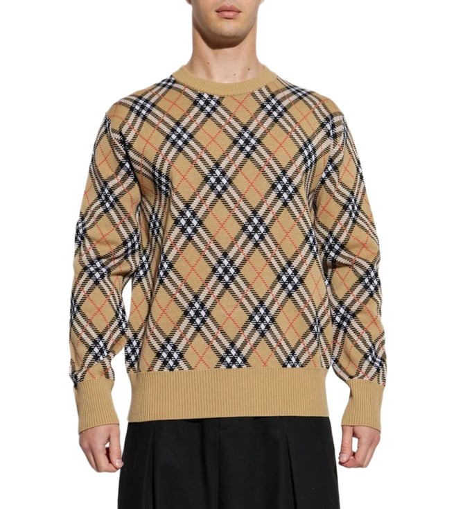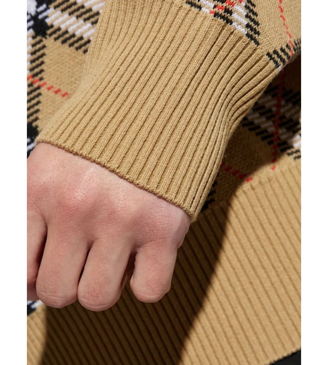 Elevate your style with the Burberry Beige Argyle Pullover. Crewneck, long sleeves, logo, pullover. Products purchased from Darveys are supported exclusively by the warranty/exchange policies of Darveys and its partner boutiques. Brand owners and their channel partners are not responsible for exchange/warranty services for items purchased through Darveys.