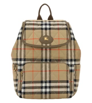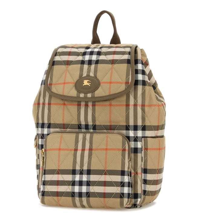 Beige Horseshoe Backpack, drawstring closure, 1 compartment, outside zip pocket, Checks, top handle with adjustable backpack straps. With its timeless design and practical features, this bag is a must-have accessory for the modern woman on-the-go.