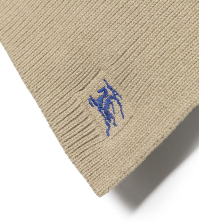 Sage green ribbed knit rectangle body wraparound style signature equestrian knight motif logo patch to the front finished edge length: 180.0 Centimetres width: 25.0 Centimetres. Products purchased from Darveys are supported exclusively by the warranty/exchange policies of Darveys and its partner boutiques. Brand owners and their channel partners are not responsible for exchange/warranty services for items purchased through Darveys.