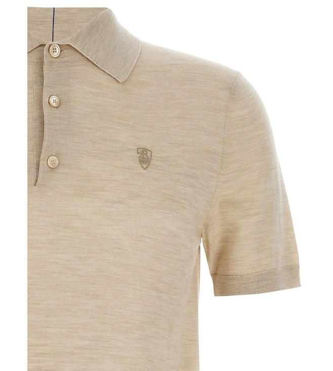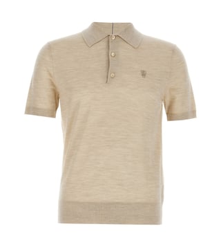 Elevate your style with the Burberry Beige polo t-shirt. Wool polo shirt, front logo embroidery, collar and buttons, short sleeves, back detail with contrast embroidery and central split. True to size fit. Products purchased from Darveys are supported exclusively by the warranty/exchange policies of Darveys and its partner boutiques. Brand owners and their channel partners are not responsible for exchange/warranty services for items purchased through Darveys.